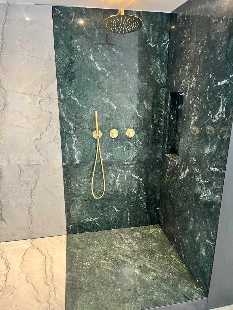 Verde Guatemala grøn marmor er en smuk og unik natursten med en dyb grøn farve og hvide årer. Den er kendt for sin elegance og luksuriøse udseende, og er et populært valg til bordplader i køkkener og badeværelser.