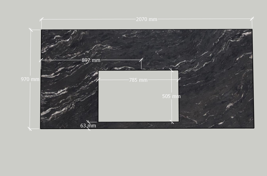 Materiale: Granit bordplade Titanium Black – 30 mm, poleret overflade